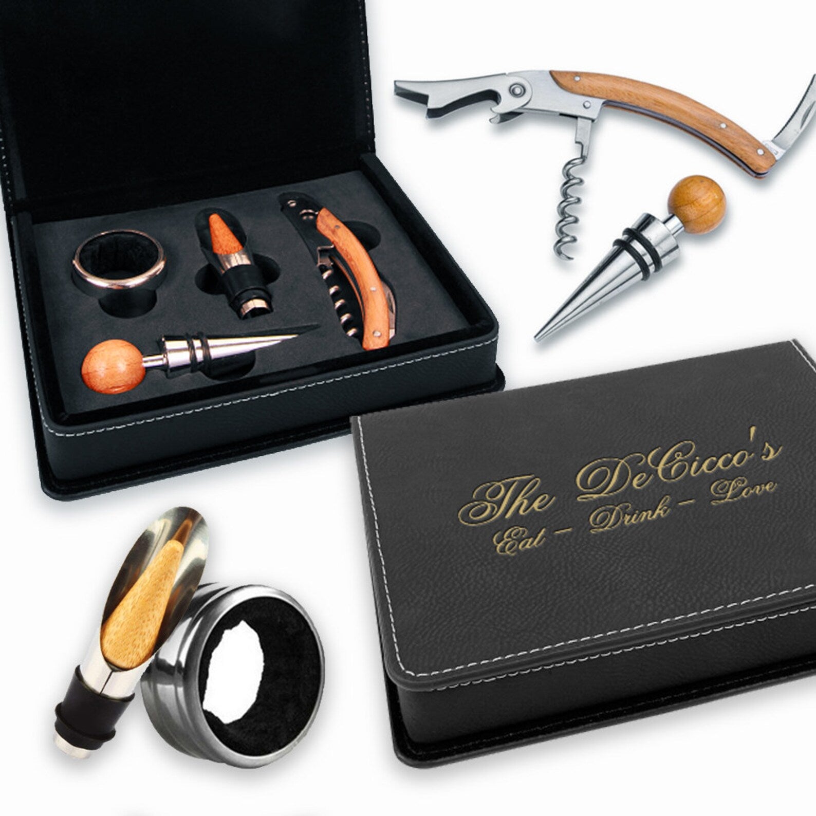 Leatherette 4-Piece Wine Tool SetUncork a good time with our stylish and practical Leatherette 4-Piece Wine Tool Set. Cheers to convenience and style!