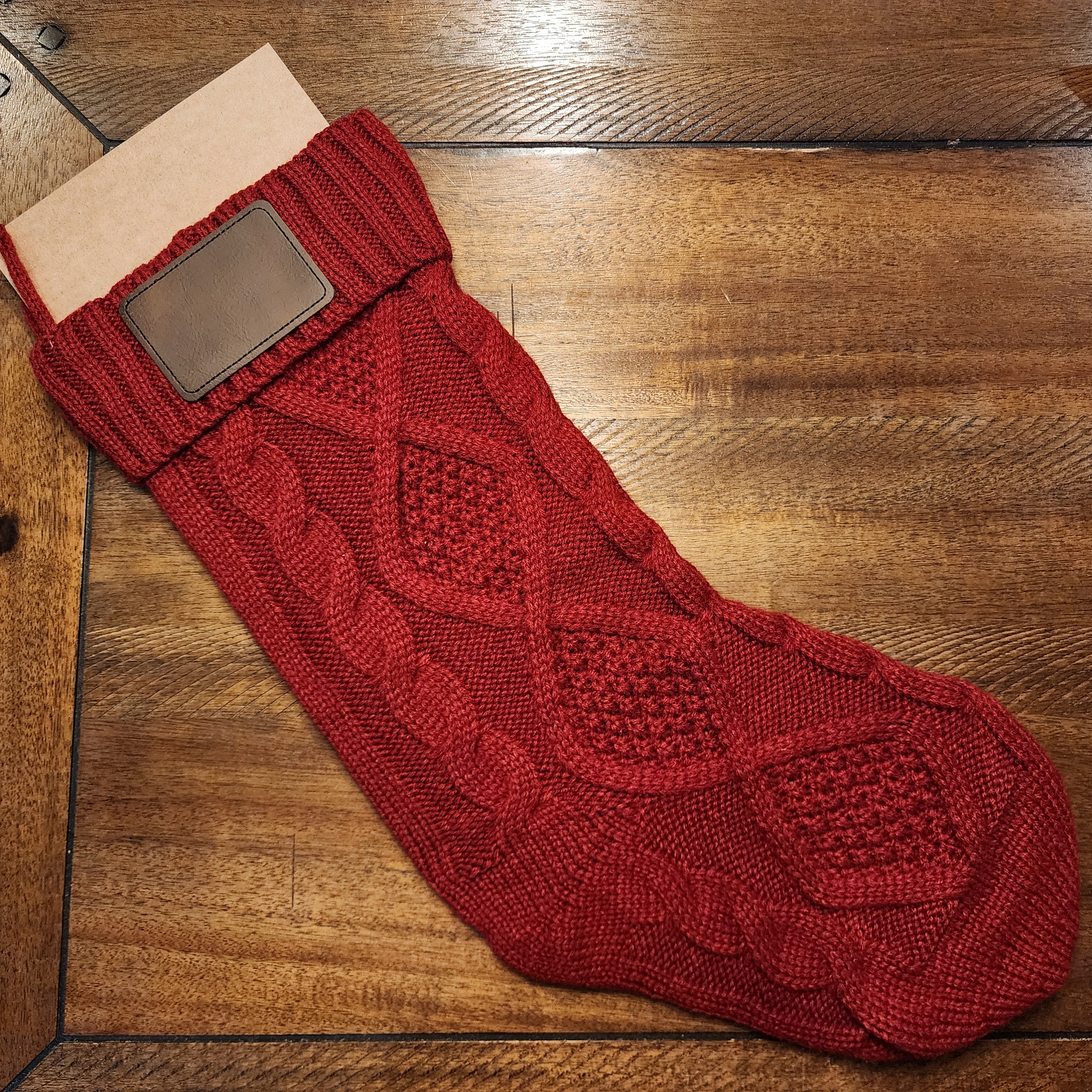 Personalized Christmas Holiday Stockings with Leatherette PatchGet into the holiday spirit with our custom Christmas stockings, each featuring a unique leatherette patch design.