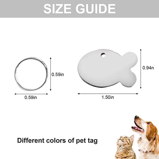 Diese fischförmigen ID-Tags aus Aluminium sind ein tolles Accessoire für Ihre Katze. Sie bieten ausreichend Platz für alle wichtigen Informationen Ihres Haustiers, wie Name, Telefonnummer, Adresse usw. (maximal drei Textzeilen). Sie können sogar einen QR-Code hinzufügen! Die Lasergravur ist langlebig, gut lesbar und haltbar. Fügen Sie eine persönliche Note hinzu, indem Sie eines unserer Standarddesigns hinzufügen. Diese Tags sind das perfekte Geschenk für jeden Tierliebhaber!