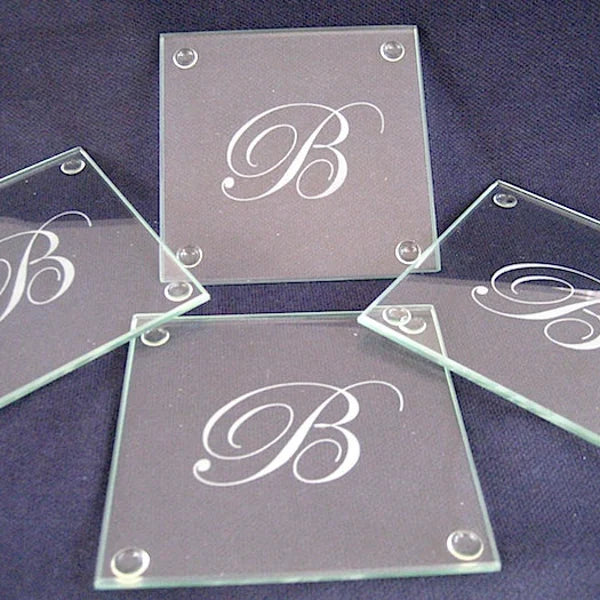 Individuell graviertes Set aus 4 personalisierten Untersetzern, wunderschön graviert mit Ihrem individuellen* Text. Die 4 x 4 Zoll großen Glasuntersetzer haben eine Polsterung an der Unterseite, um Möbel zu schützen . Perfekt als Einweihungsgeschenk, Geschenk für frisch Vermählte, Hochzeitsgeschenk und Geschenk für jeden anderen Anlass.