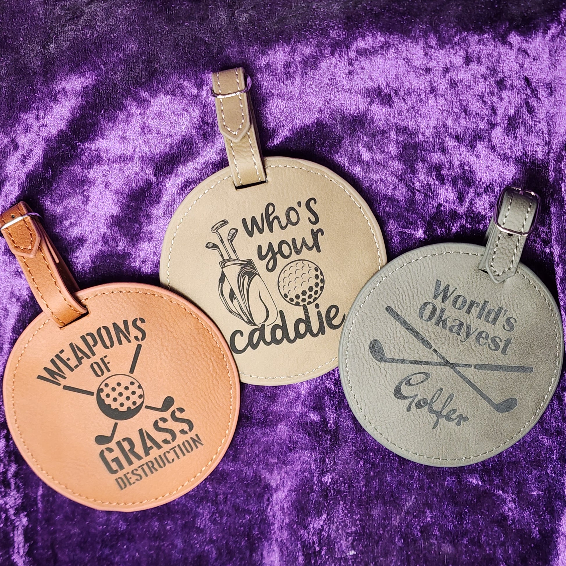 Das perfekte Geschenk für jeden Golfer! Jedes Kunstleder wird mit einem Standarddesign oder Ihrem individuellen* Text bzw. Design wunderschön graviert.