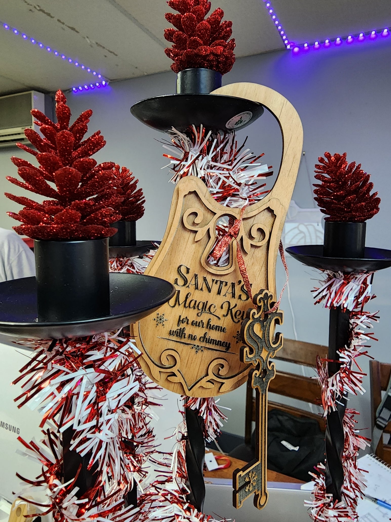 Entfesseln Sie die Magie von Weihnachten mit Santas magischem Schlüssel-Türhänger! Für Häuser ohne Kamin bietet dieser festliche Kleiderbügel eine lustige und skurrile Alternative, die Ihre Kinder davon überzeugen wird, dass der alte Nikolaus an Heiligabend da war. Hängen Sie ihn auf und verbreiten Sie in dieser Weihnachtszeit Freude und Staunen in Ihrem Haushalt!