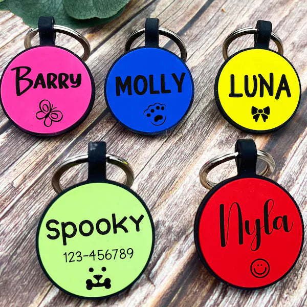 Diese Hundemarken aus Silikon sind ein tolles Accessoire für Ihr Fellbaby. Mit 3 Textzeilen gibt es viel Platz für alle wichtigen Informationen Ihres Haustiers, wie Name, Telefonnummer, Adresse usw. Die Lasergravur ist langlebig, gut lesbar und haltbar. Fügen Sie eine persönliche Note hinzu, indem Sie eines unserer Standarddesigns hinzufügen. Dies ist das perfekte Geschenk für jeden Tierliebhaber!