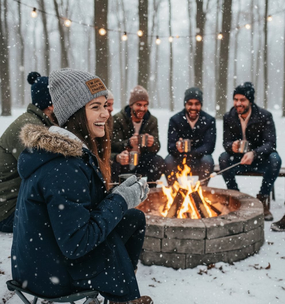 Chunky Knit Beanie Cap with Custom Leatherette Patch