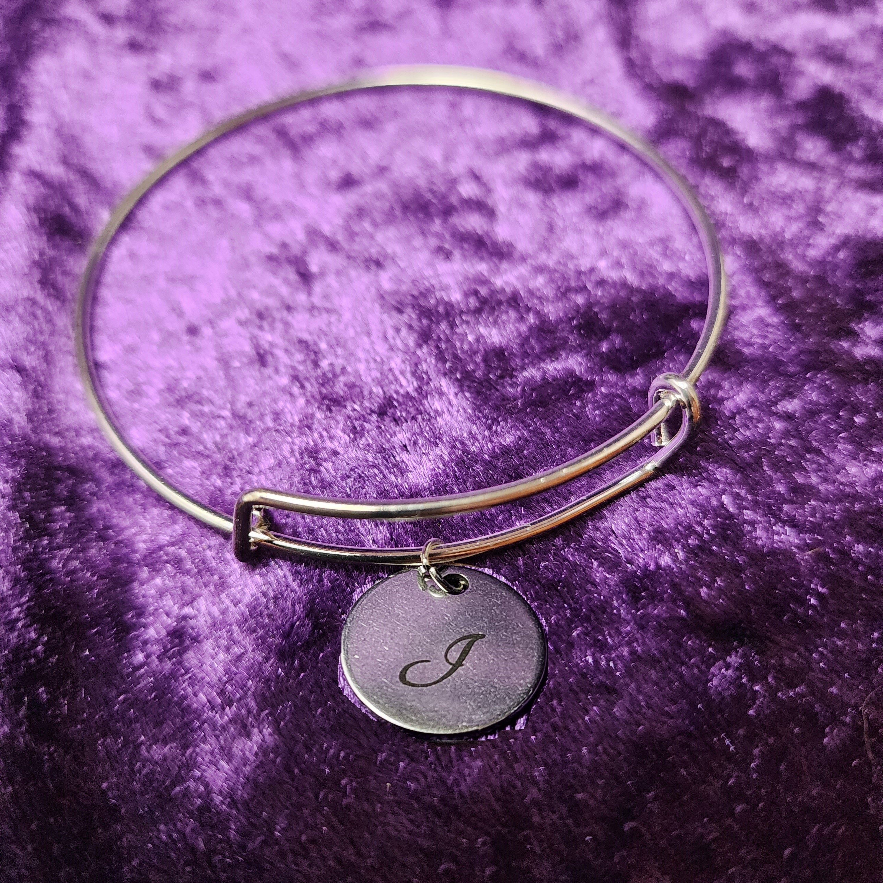 Personalized Initial Bangle BraceletAdd a personal touch to your style with our Personalized Initial Bangle Bracelet. Customizable and unique, it's the perfect accessory.