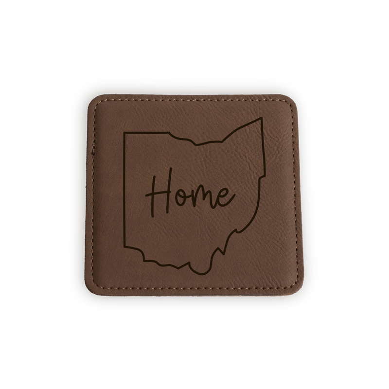 Leatherette Coasters (set of 6 with holder)Add a personal flair to your home with our leatherette coasters, featuring options for custom text or designs.