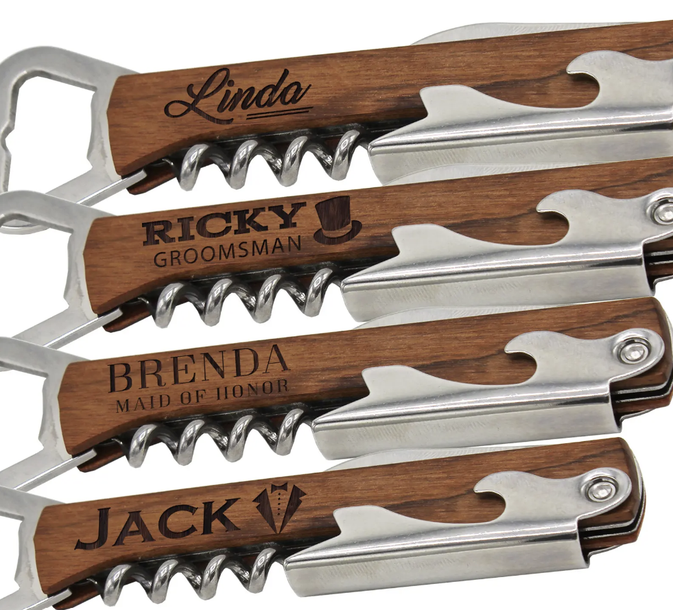 Add a personal touch to your next wine night with our Personalized Wood Wine Bottle Opener. Made from high-quality wood, this opener can be customized with your name or initials, making it the perfect gift or addition to your own collection. Pop open your favorite bottle with style and personality!