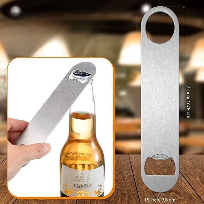 Our custom laser engraved stainless steel bar blade style bottle opener is the perfect addition to any home bar or kitchen. Made from high-quality stainless steel, with a sleek and stylish design, this opener is not only functional but also serves as a unique and personalized touch to your barware collection.