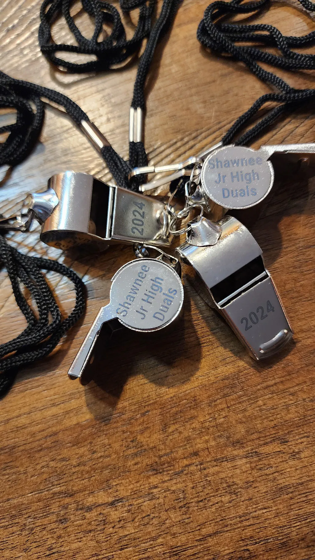 Happy with our engraved whistles for our son’s Hockey team coaches. Clean engraving and done with care.